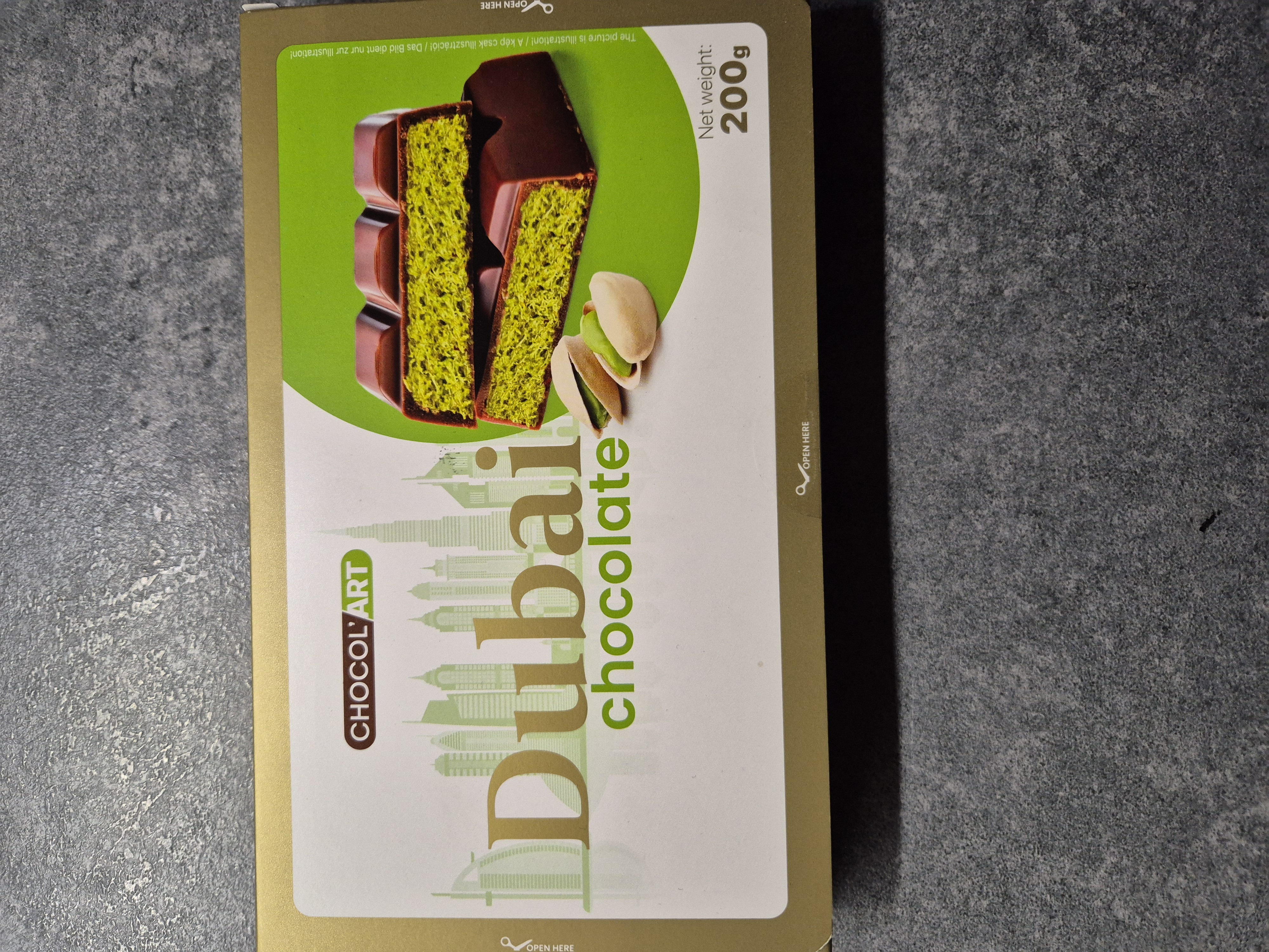 ChocolArt Dubai tejcsokoládé pisztáciás kadayif tésztás töltelékkel 200 g csokoládés édesség. Különlegesebb jellegű csokoládés édesség, amely snackként vagy desszertként is megállja a helyét. Kiszerelés: 200 g. A pontos összetevők, allergének és tápértékek a gyártói csomagoláson találhatók.